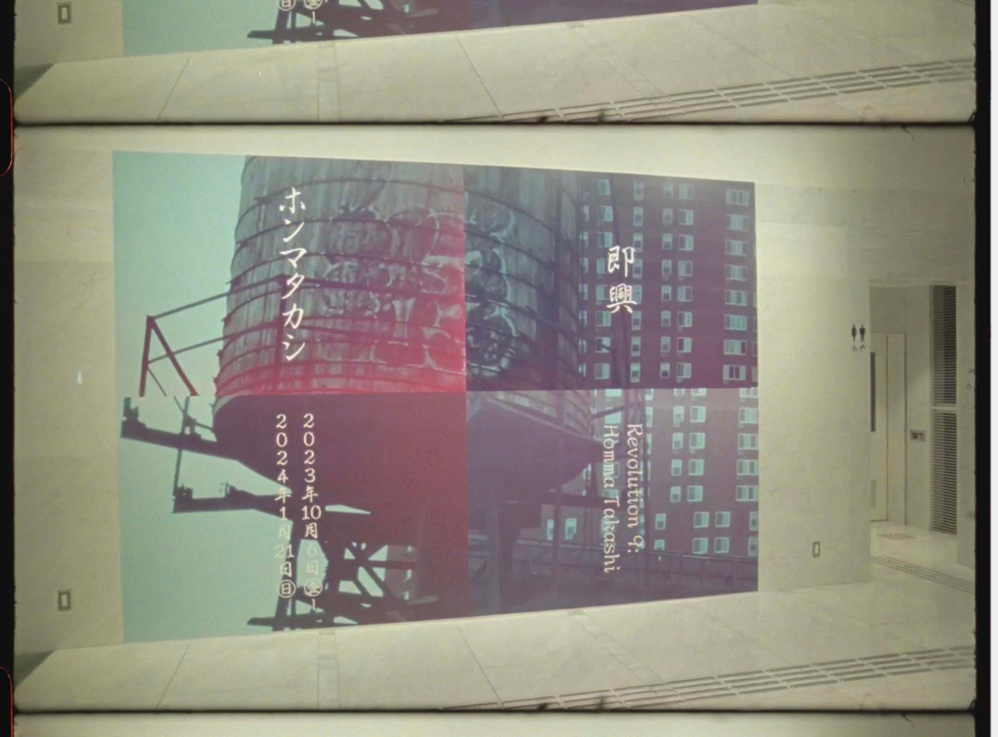 There is a focus on improvisation in the exhibition, entitled Revolution 9. Homma explains, “The title is, of course, from a Beatles song, their only music concoction, well, noise, a sound collage.” John Lennon said of the song that he was trying to paint a picture of a revolution using sound. Inspired by Yoko Ono’s avant-garde art, Lennon put a collection of voices together for the track. In the show, Homma and his musical collaborators have done numerous musical performances playing piano, steel pans, and various electronic instruments to accompany viewing of the work. “Music, or rather sound, is important to me,” Homma says, “not background music. I want to do photography and music at the same level.”