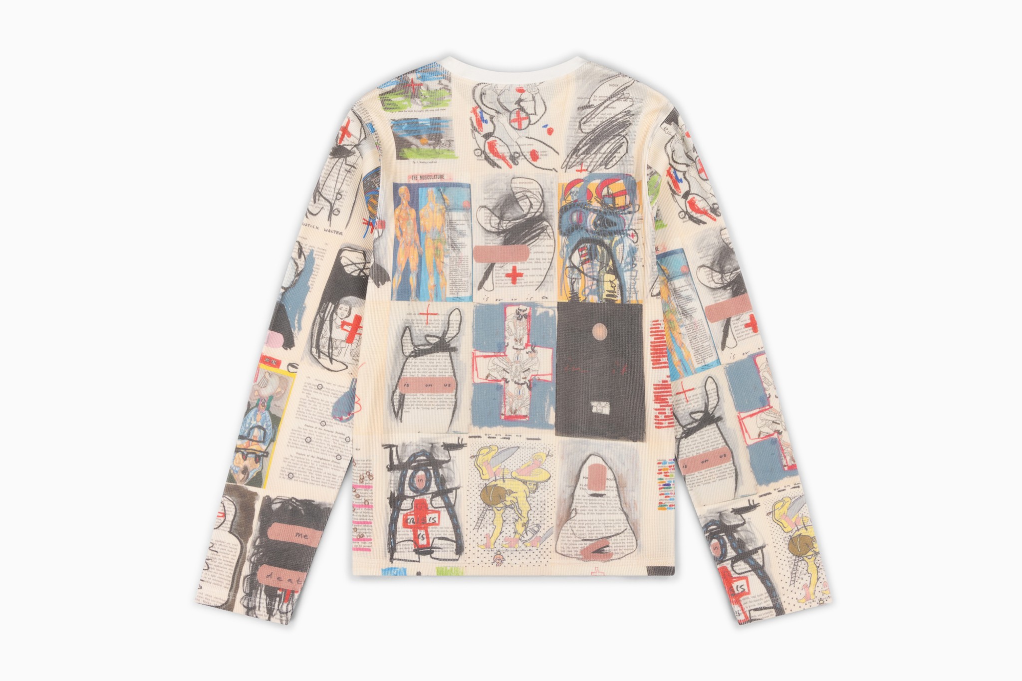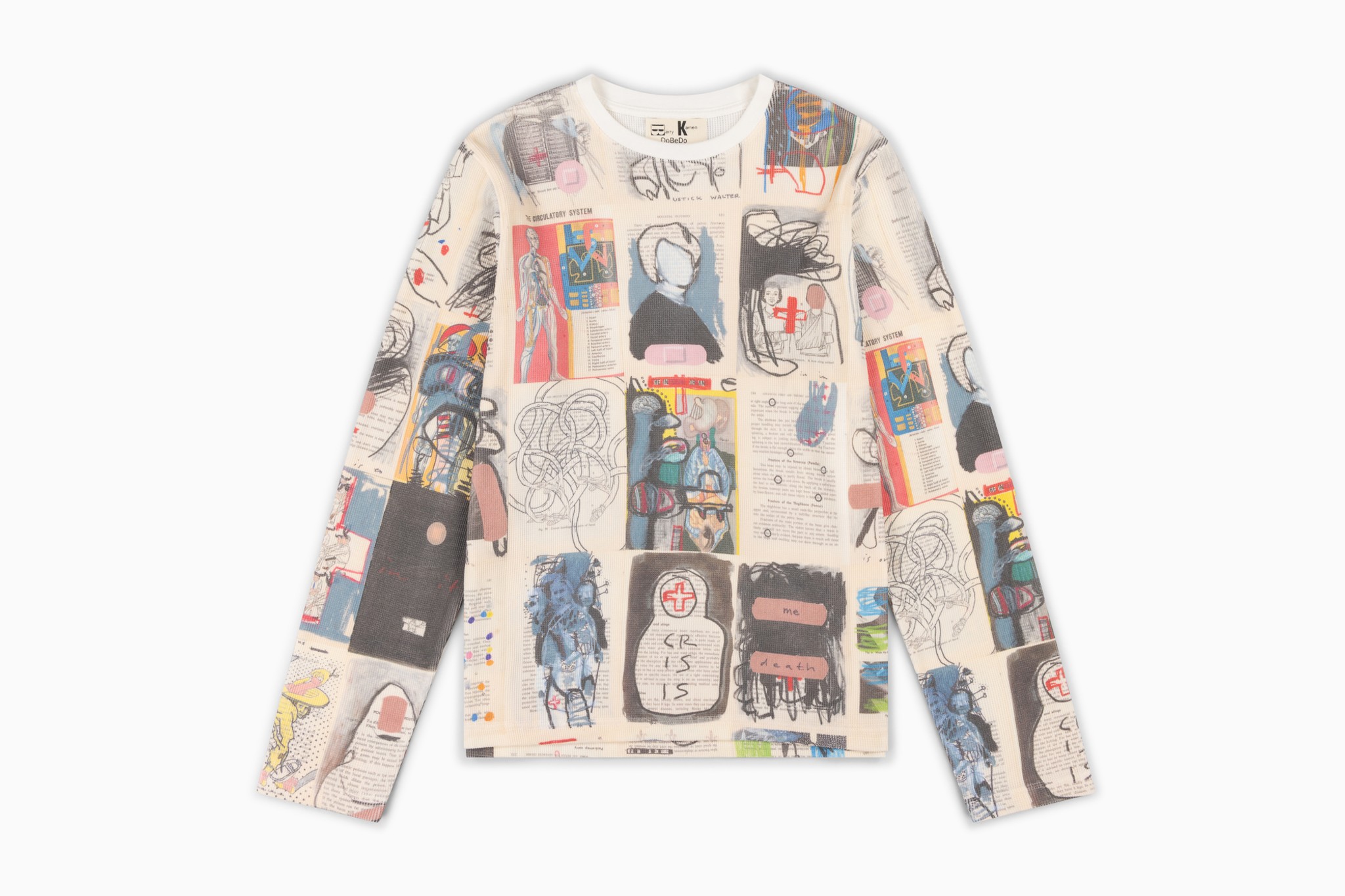 This all-over-print thermal longsleeve featuring pages from Kamen's First Aid sketchbook.